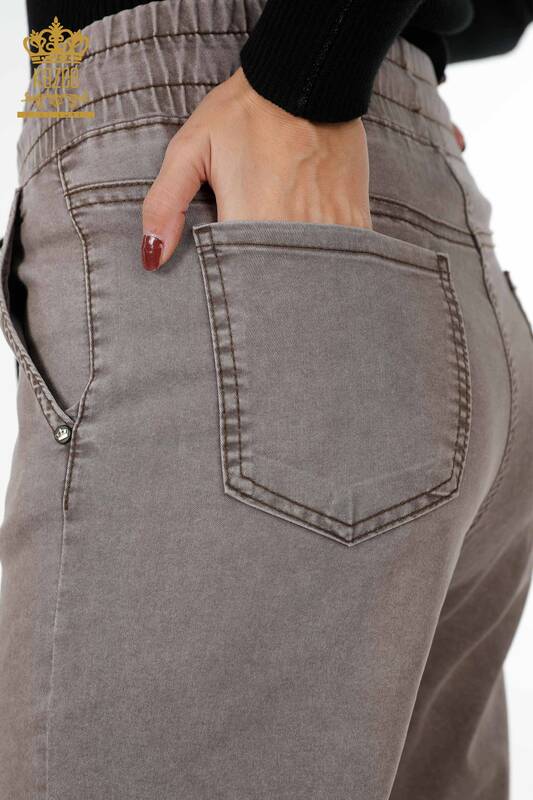 Vente en gros de pantalons pour femmes avec cravate élastique à la taille détaillée avec texte - 3499 | KAZEE