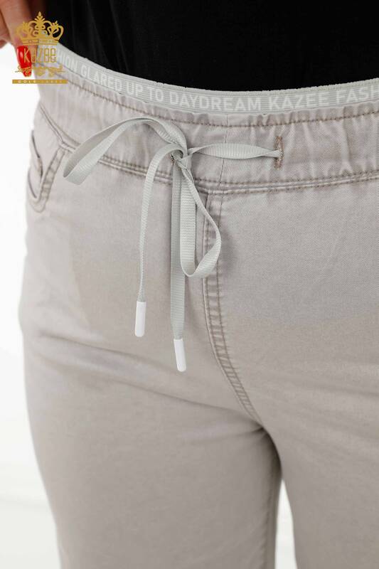 Grossiste Pantalon Femme Taille Élastique Poche Beige - 3672 | KAZEE