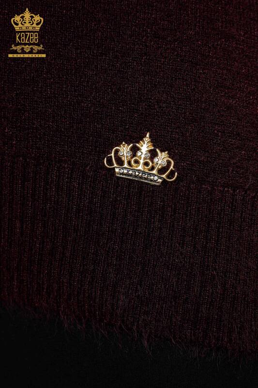 Grossiste Pull Femme Tricot Col Roulé Angora Logo Prune - 12046 | KAZEE