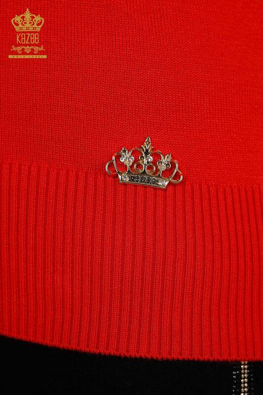 Grossiste Pull Femme Tricot American Model Basic Logo Orange - 15943 | KAZEE
