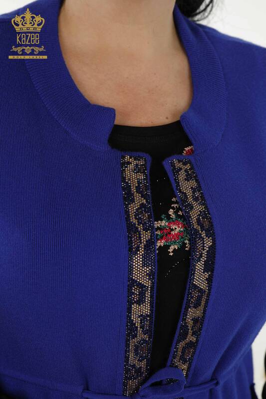 en gros Femmes Gilet Léopard Pierre Brodé Poche Corde Attachée Saks - 30261 | KAZEE