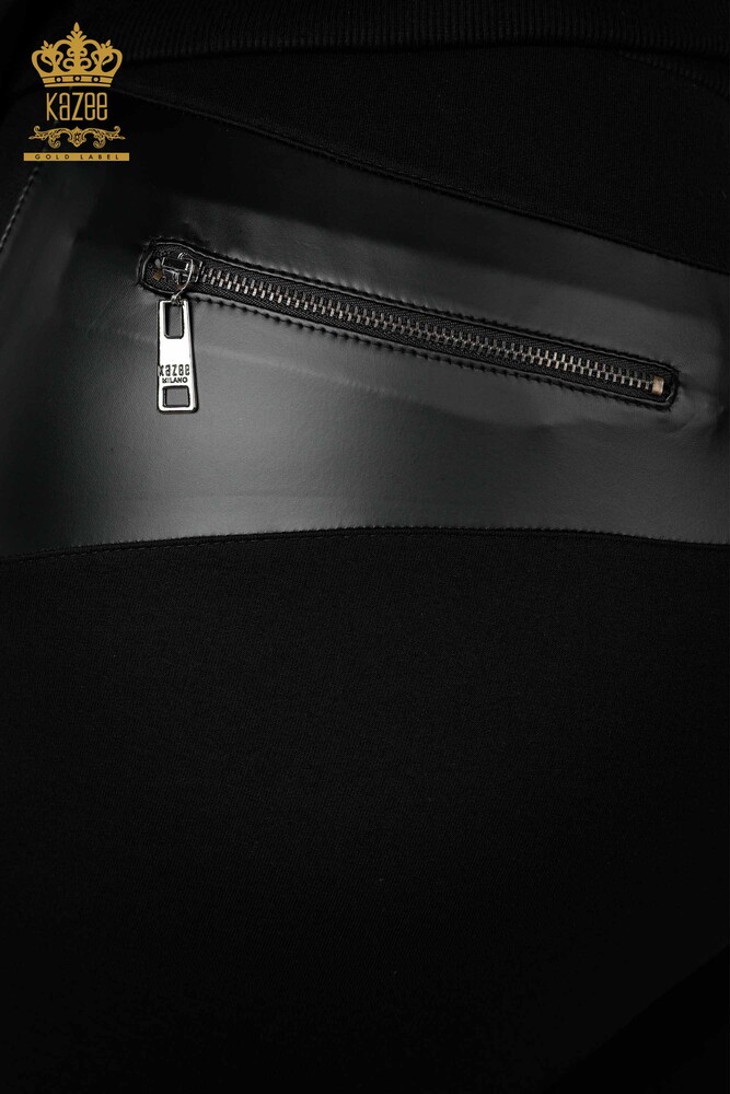 Vente en gros Ensemble de survêtement pour femmes en cuir avec poche zippée détaillée noir - 17337 | KAZEE