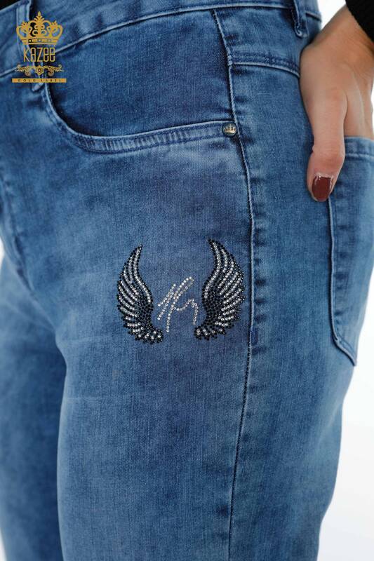 Vente en gros de pantalons en jean pour femmes à motifs avec texte détaillé brodé de pierre - 3553 | KAZEE