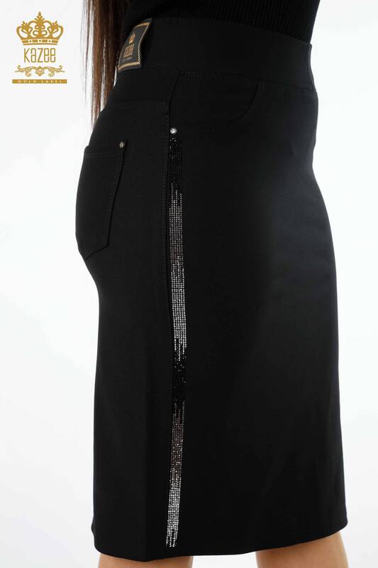 Vente en gros Jupe Stripe Crystal Stone Poche Brodée Détaillée pour Femmes - 4169 | KAZEE