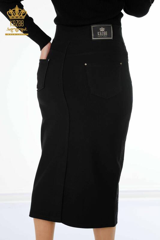 Vente en gros de jupe longue pour femmes à motifs pierre brodée détail ligne - 4188 | KAZEE