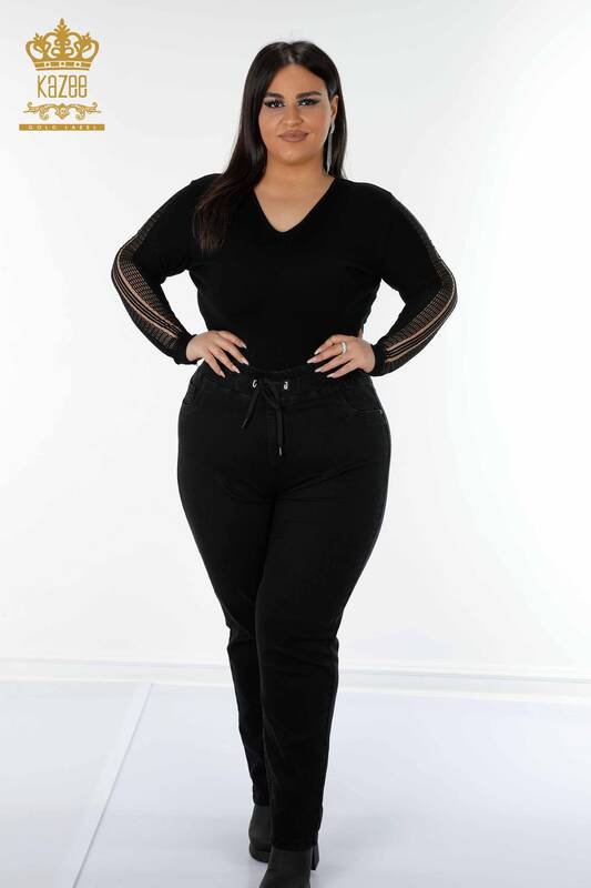 Grossiste Pantalon Femme Taille Élastique Poche Détaillée Noir - 3660 | KAZEE