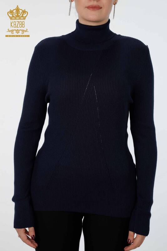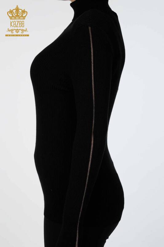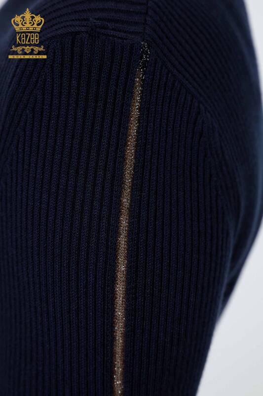 Grossiste Tricot Femme Détail Manches Pierre Brodé Rayé - 16241 | KAZEE