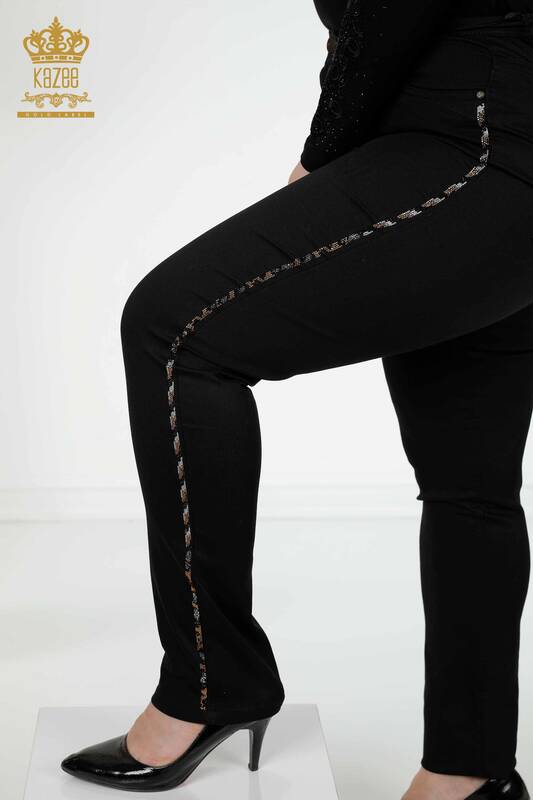 Vente en gros de Jeans Femme Motif Léopard Pierre Poche Brodée Détaillée Noir - 3600 | KAZEE