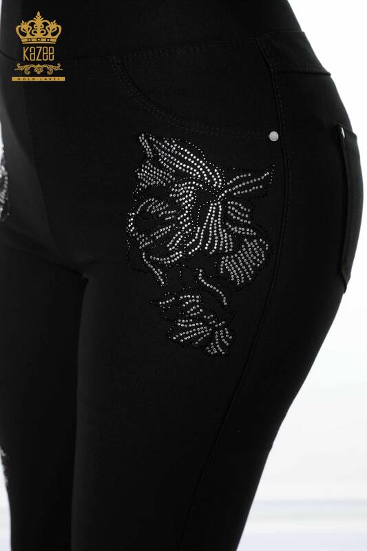 Grossiste Jeans Femme Motif Noir Avec Poche Brodée Pierre Cristal - 3565 | KAZEE