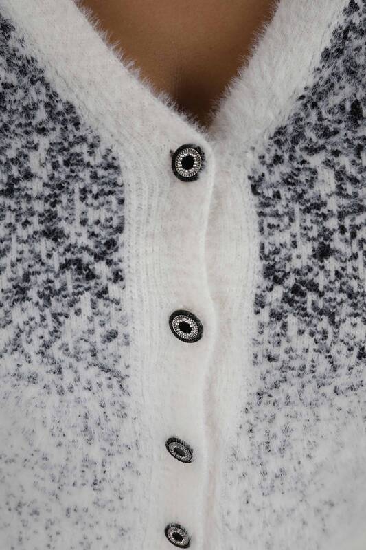 Cardigan angora cu decolteu în V Ecru Negru - 30897 | KAZEE (Set de 4 S-M-L-XL)