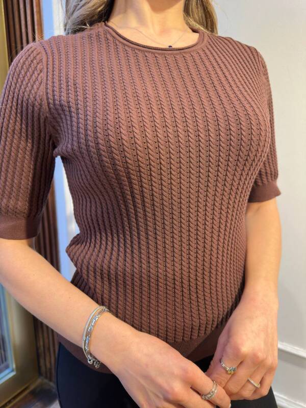 Вязаный свитер с коротким рукавом и декоративными деталями, кофейный цвет - 32062 | KAZEE (комплект из 3 предметов M-L-XL)