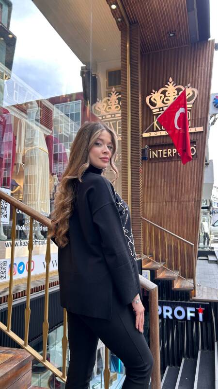 Вязаный свитер с высоким воротником и цветочной вышивкой, черный - 32251 | KAZEE (комплект из 3 предметов M-L-XL)