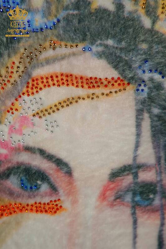 Wholesale Women's Angora Knitwear Digital Printed Stone Embroidered Long Sleeve Digital - 40017 | KAZEE