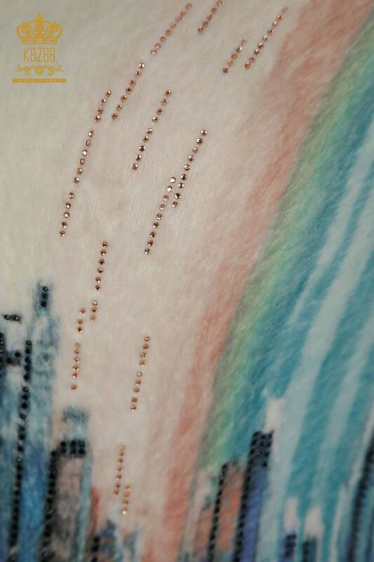 Wholesale Women's Angora Knitwear Sweater Stone Embroidered Long Sleeve Digital - 40019 | KAZEE