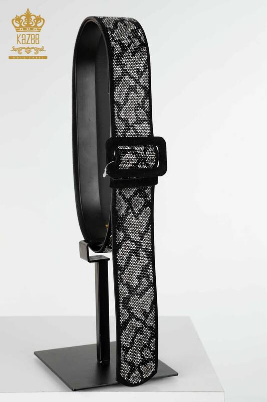 Wholesale Women's Belt Crystal Stone Embroidered Black - 510| KAZEE