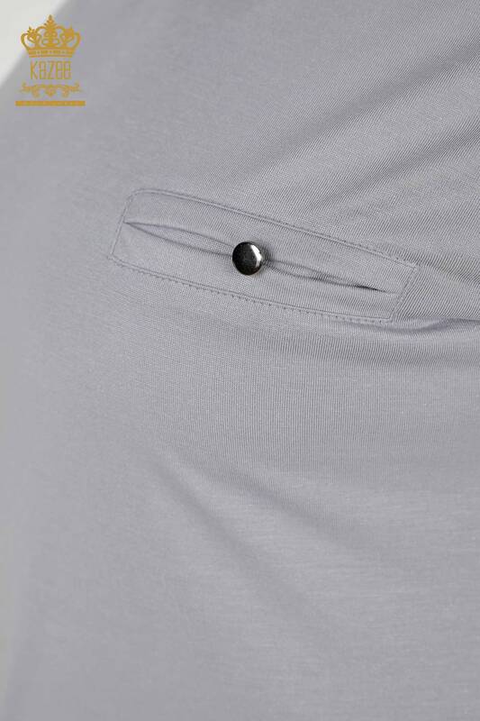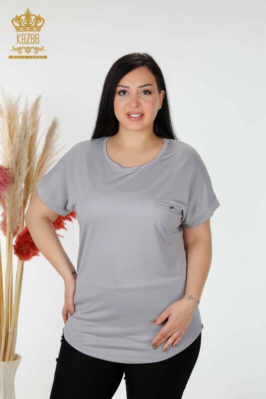 Wholesale Women's Blouse American Model Crew Neck Gray - 77005 | KAZEE