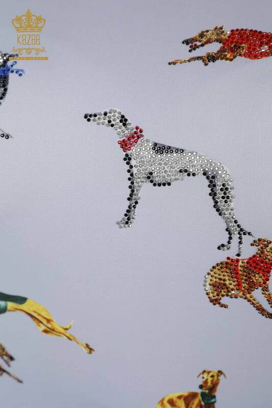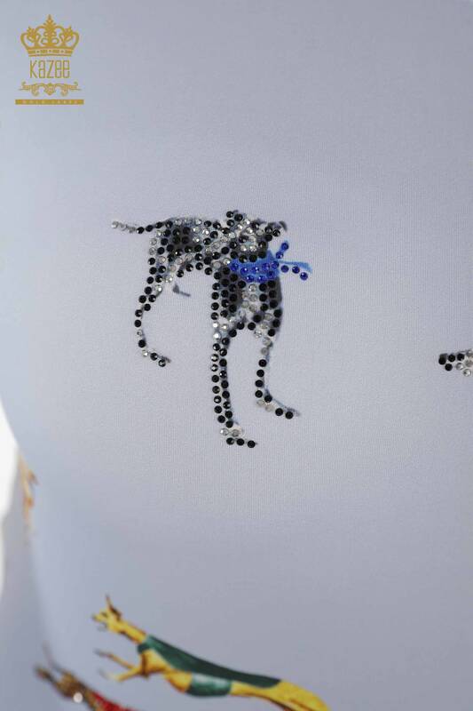Wholesale Women's Blouse Animal Figured Stone Embroidered Blue - 77772 | KAZEE