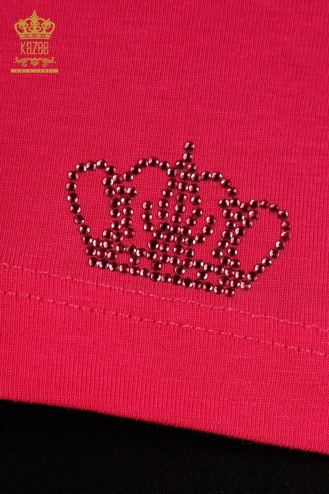 Wholesale Women's Blouse Basic Short Sleeve Crew Neck Fuchsia - 79562 | KAZEE