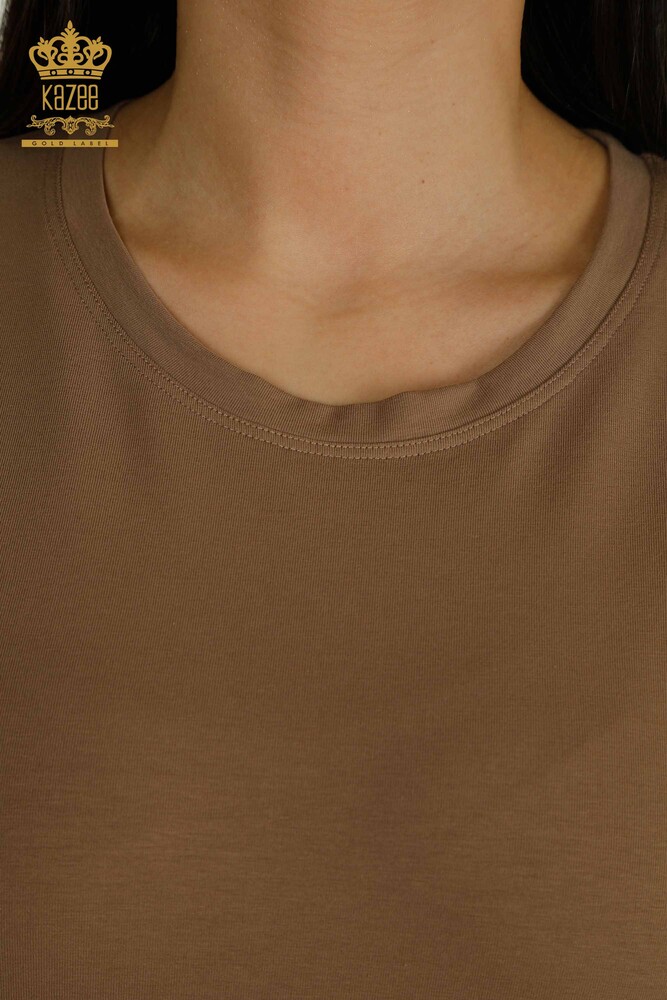 Wholesale Women's Blouse Basic Short Sleeve Crew Neck Light Brown - 79562 | KAZEE