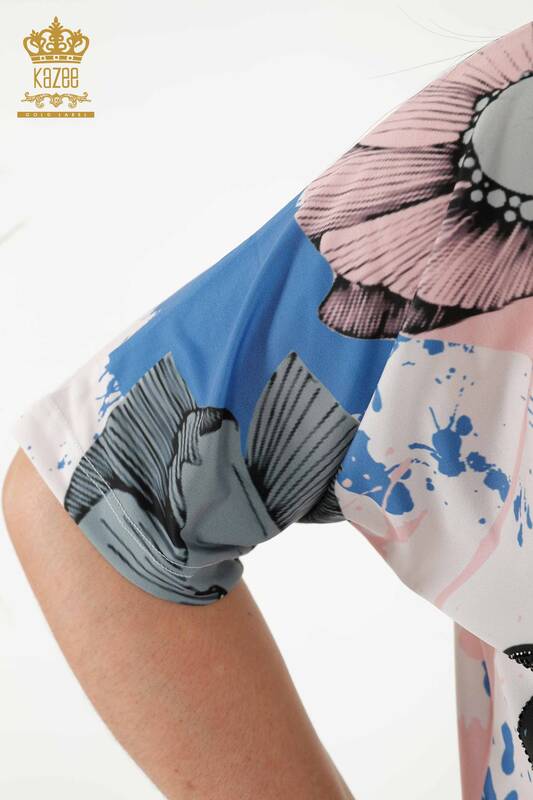 Wholesale Women's Blouse Butterfly Patterned Stone Embroidered Powder - 77900 | KAZEE