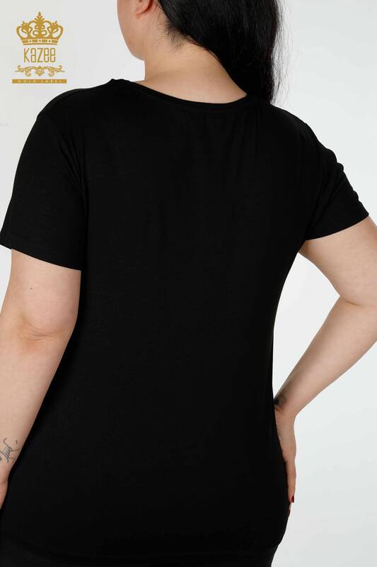 Wholesale Women's Blouse Patterned Colored Stone Embroidered Black - 77874 | KAZEE