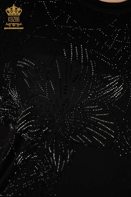 Wholesale Women's Blouse Crystal Stone Embroidered Pattern Black - 78835 | KAZEE