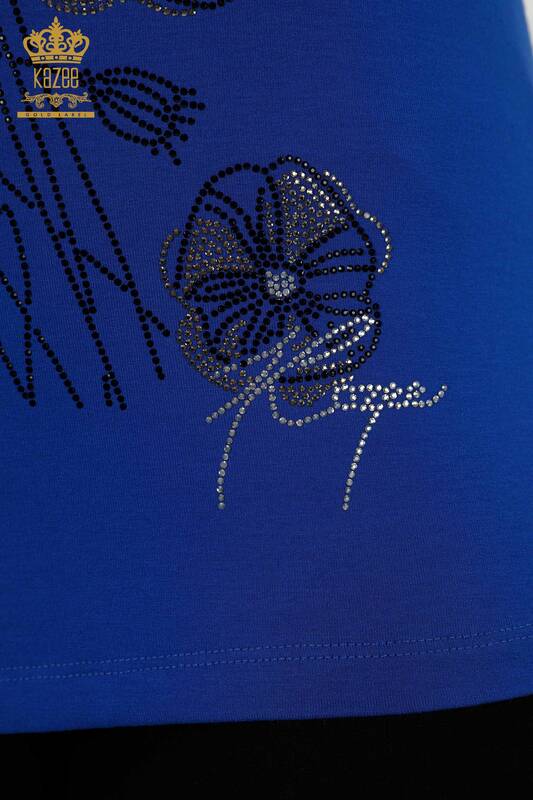 Wholesale Women's Blouse Floral Pattern Stone Embroidered Tulle Detailed - Dark Blue - 79290 | KAZEE