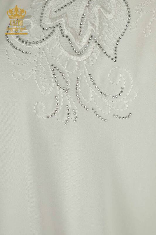 Wholesale Women's Blouse Leaf Patterned Stone Embroidered Ecru - 79090 | KAZEE
