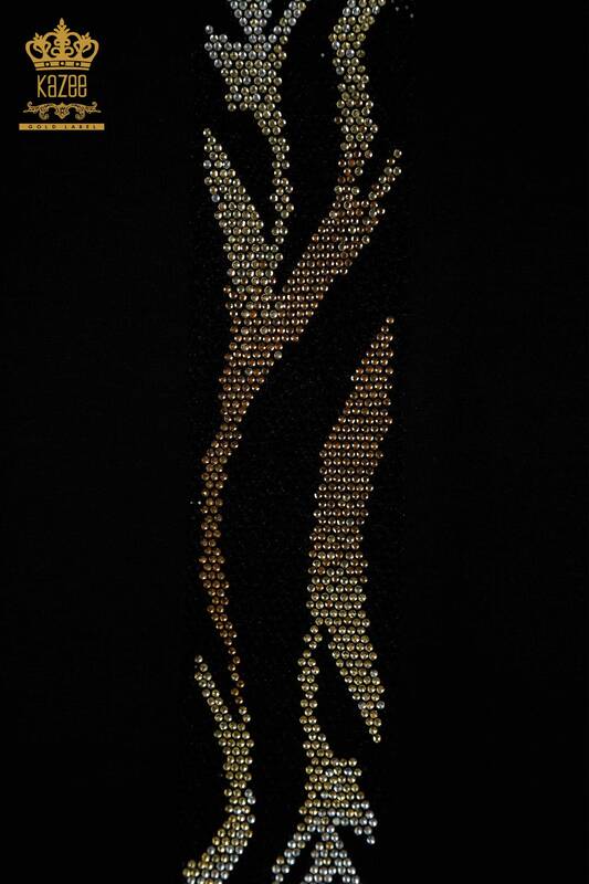 Wholesale Women's Blouse Leopard Stone Embroidered Short Sleeve Black - 79242 | KAZEE