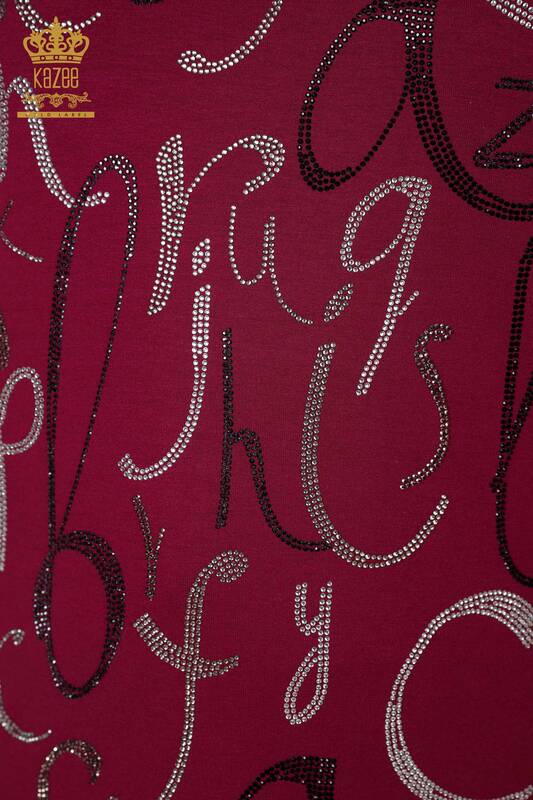 Wholesale Women's Blouse Crystal Stone Embroidered Letter Detailed Purple - 78833 | KAZEE