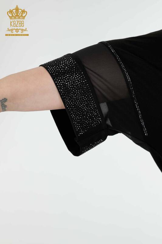 Wholesale Women's Blouse Patterned Stone Embroidered Tulle Detailed Black - 79025 | KAZEE
