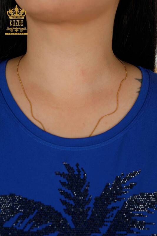 Wholesale Women's Blouse Stone Embroidered Patterned Short Sleeve Saks - 79325 | KAZEE