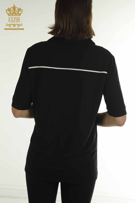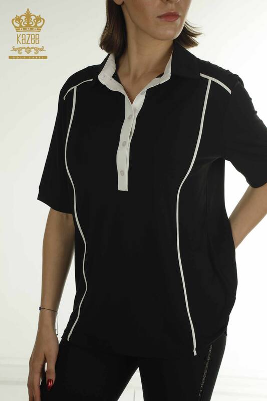 Wholesale Women's Blouse Polo Neck Button Detailed Black - 79566 | KAZEE