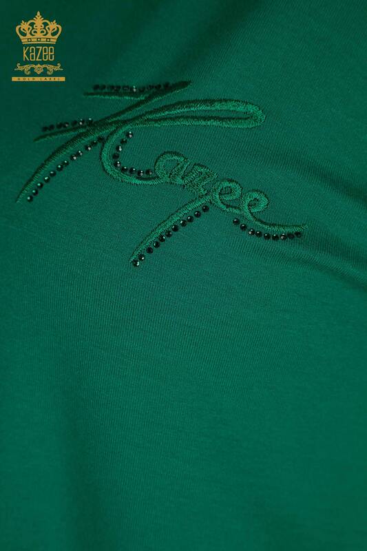 Wholesale Women's Blouse Short Sleeve Stone Embroidered Tulle Detailed Green - 79302 | KAZEE