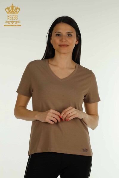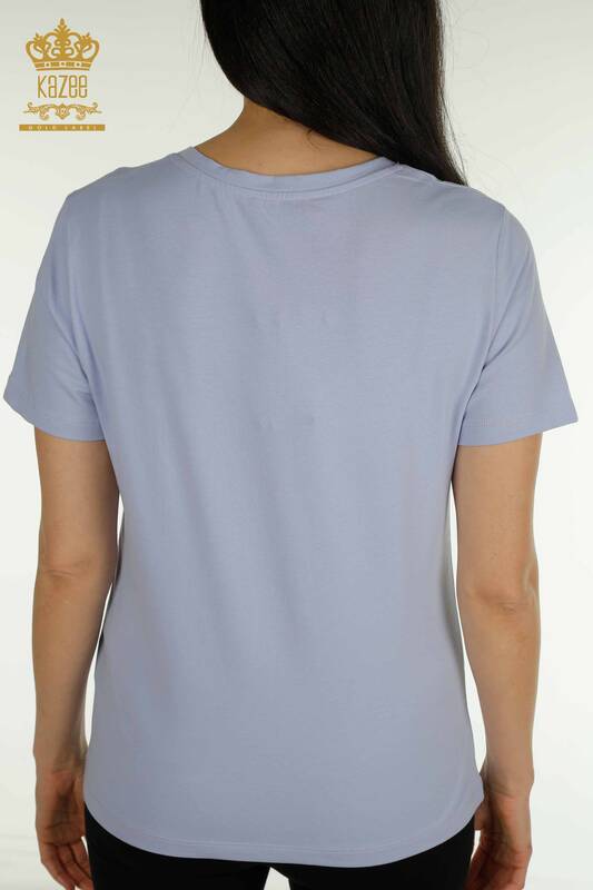 Wholesale Women's Blouse Short Sleeve Stone Embroidered V-Neck Lilac - 79561 | KAZEE