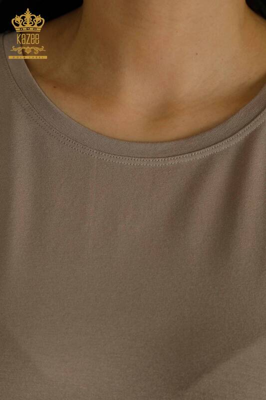 Wholesale Women's Blouse Short Sleeve Stone Embroidered Tulle Detailed Mink - 79302 | KAZEE