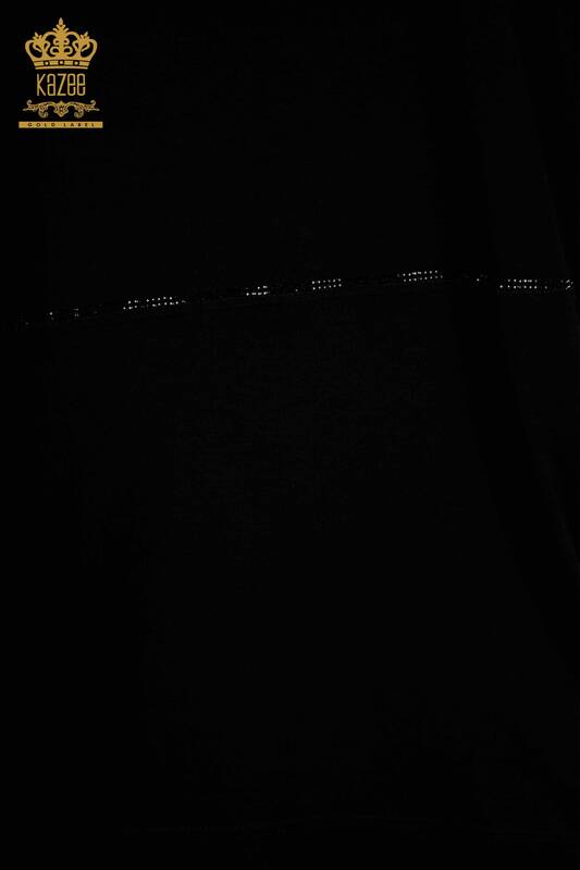 Wholesale Women's Blouse Floral Pattern Stone Embroidered Black - 79057 | KAZEE