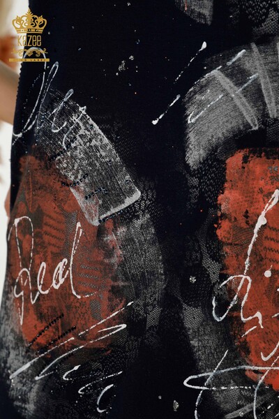 Wholesale Women's Blouse Short Sleeve Stone Embroidered Patterned Navy - 79115 | KAZEE