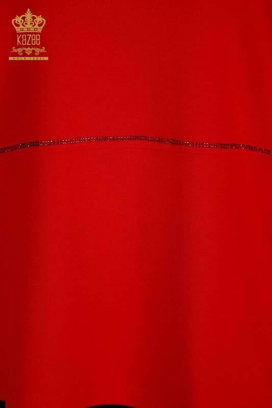 Wholesale Women's Blouse Floral Pattern Stone Embroidered Red - 79057 | KAZEE