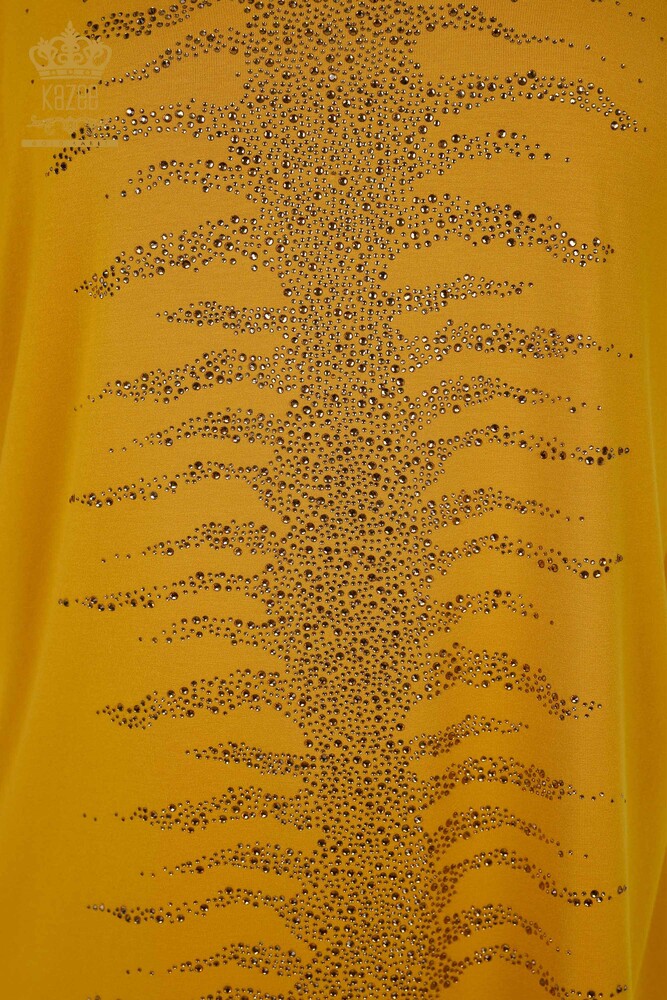 Wholesale Women's Blouse Stone Embroidered Patterned Short Sleeve Saffron - 79321 | KAZEE