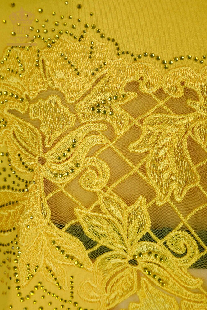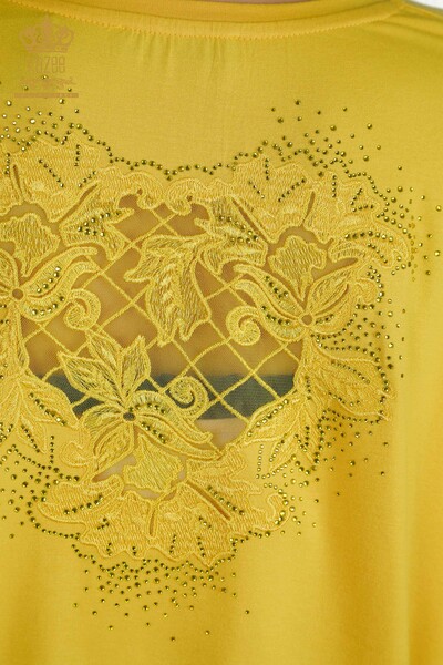 Wholesale Women's Blouse Tulle Detailed Short Sleeve Stone Embroidered Saffron - 79390 | KAZEE