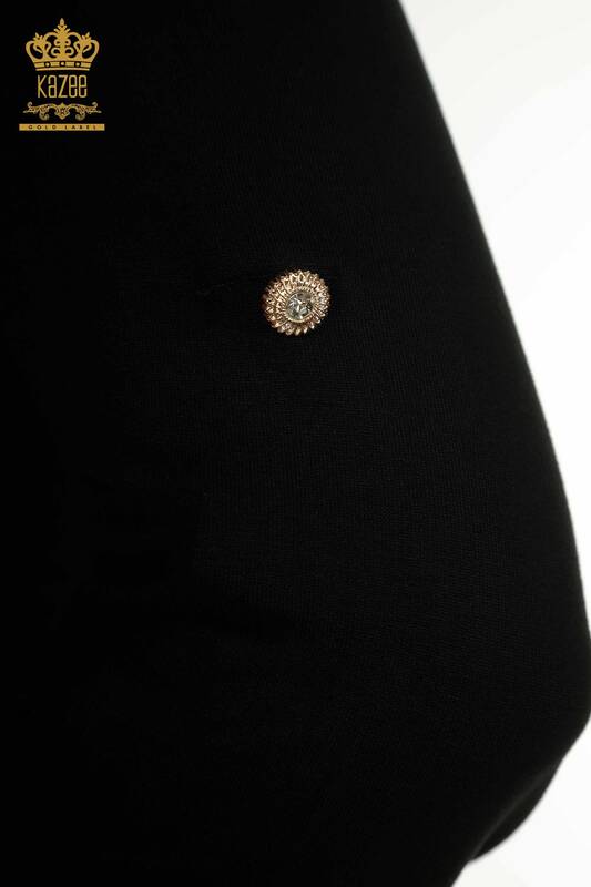 Wholesale Women's Blouse V Neck Stone Embroidered Black - 79309 | KAZEE
