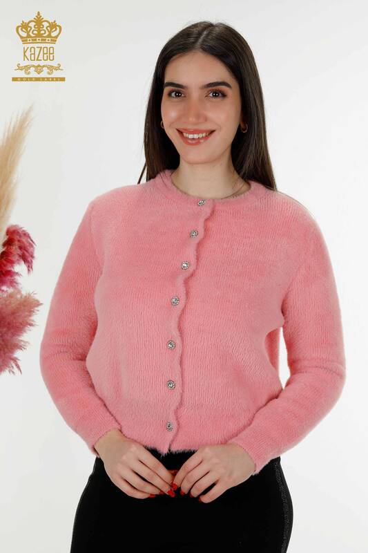 Wholesale Women's Cardigan Angora Buttoned Powder - 19099 | KAZEE