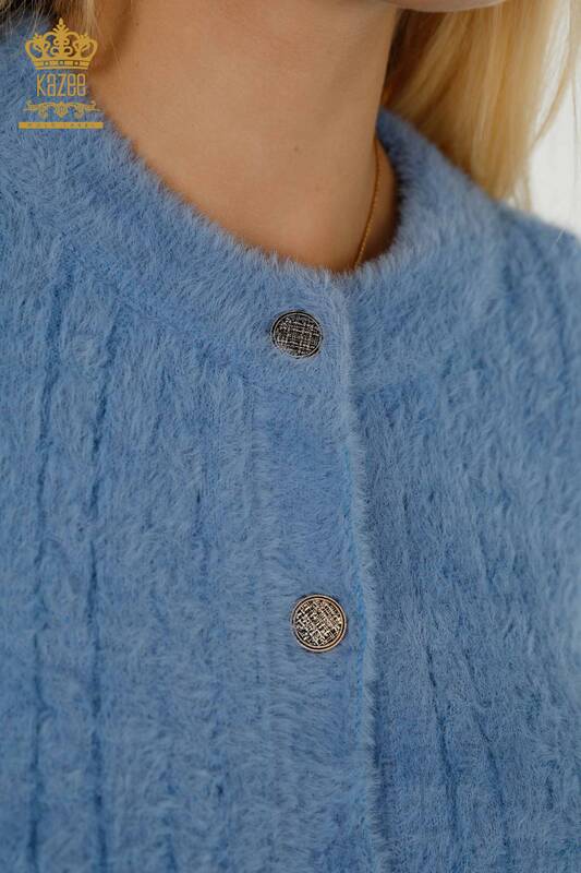 Wholesale Women's Cardigan Angora Woven Blue - 30321 | KAZEE