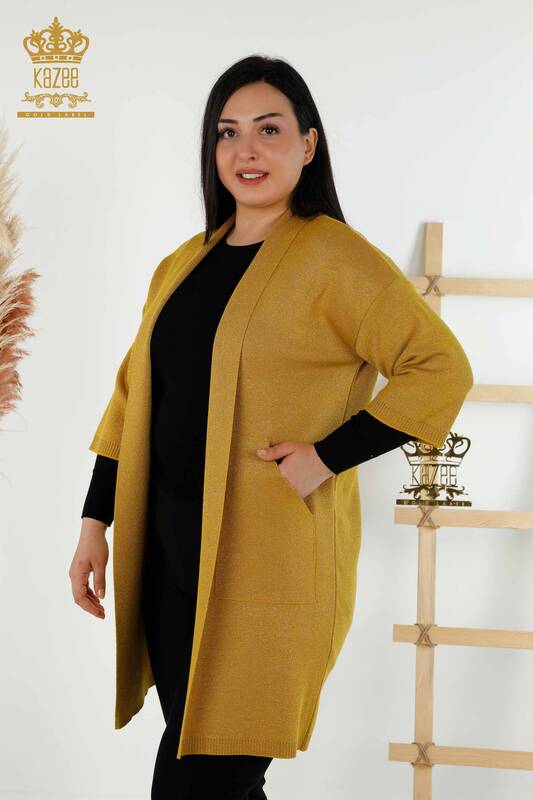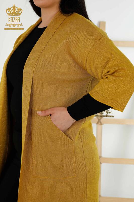 Wholesale Women's Cardigan Pocket Detailed Long Saffron - 30047 | KAZEE