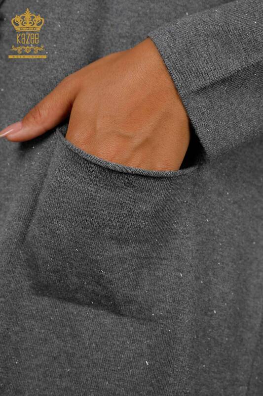 Wholesale Women's Knitwear Cardigan Glitter Crossed Pocket Long - 16807 | KAZEE