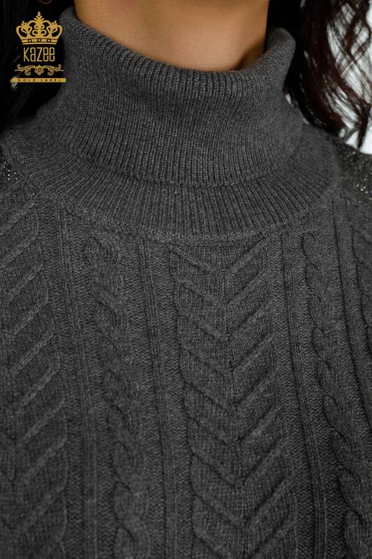 Wholesale Women's Knitwear Shoulder Crystal Stone Embroidered Gray - 30097 | KAZEE