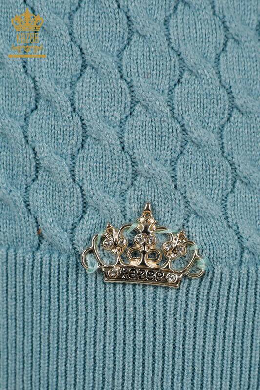 Wholesale Women's Knitwear Sweater American Model Basic Logo Blue - 30119 | KAZEE