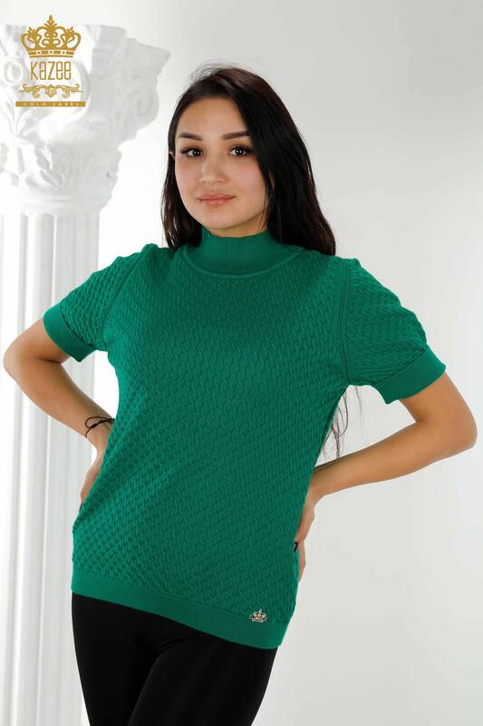 Wholesale Women's Knitwear Sweater American Model Basic Logo Green - 30119 | KAZEE