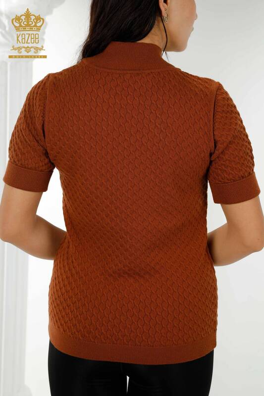 Wholesale Women's Knitwear Sweater American Model Basic Logo Tan - 30119 | KAZEE